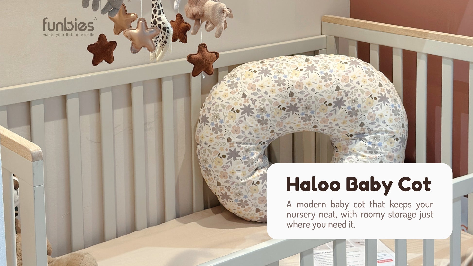 For added practicality, the Haloo Cot includes a spacious storage area beneath the base—perfect for keeping baby essentials like bedding, toys, or diapers neatly organized and close at hand.