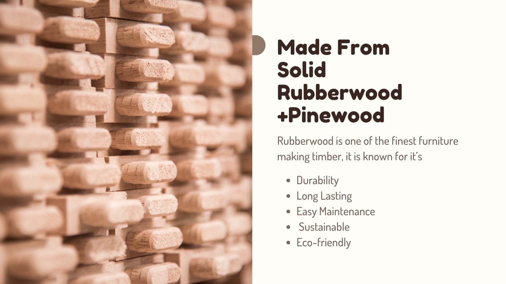 • Made from solid Malaysian rubberwood + Pinewood for long-lasting durability