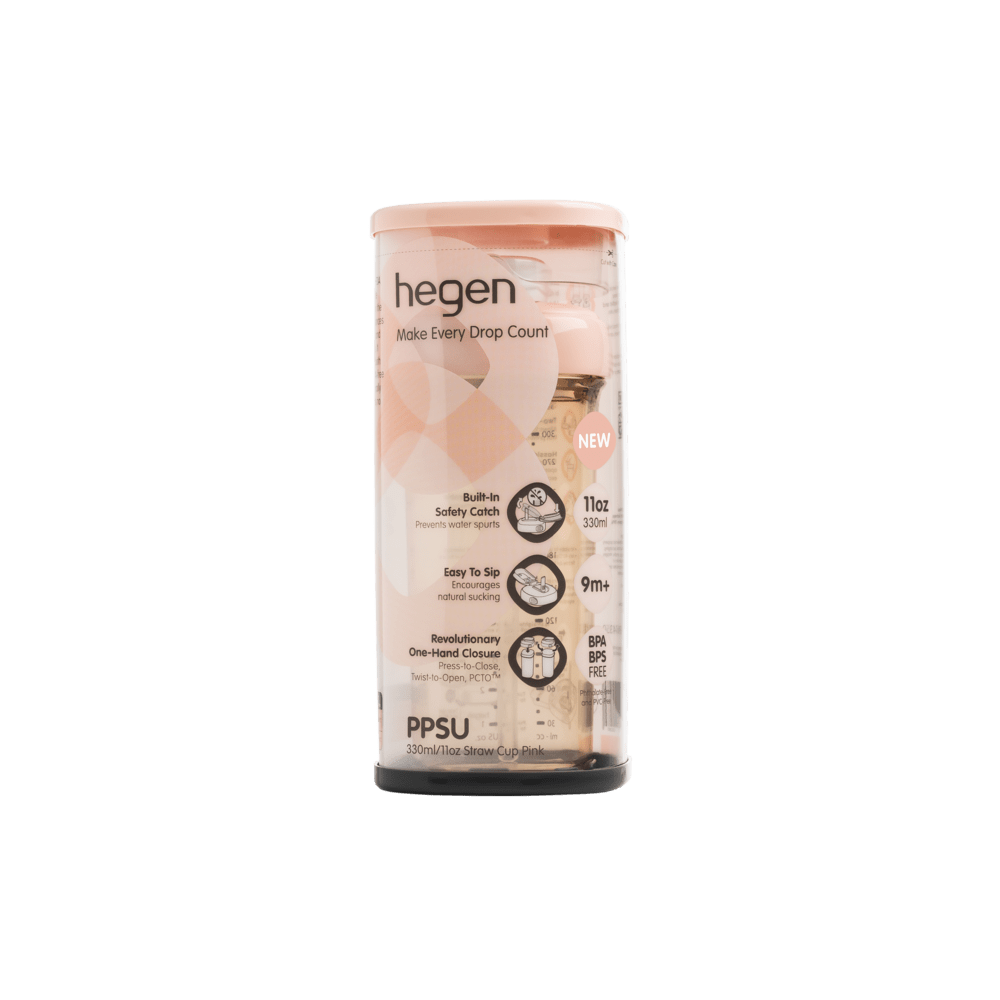 The newest addition to the family, Hegen’s Straw Cup is the first of its kind straw cup with a unique one-hand closure. Useful for parents with their hands full, no screw threads, just Press-to-Close, Twist-to-Open™!
