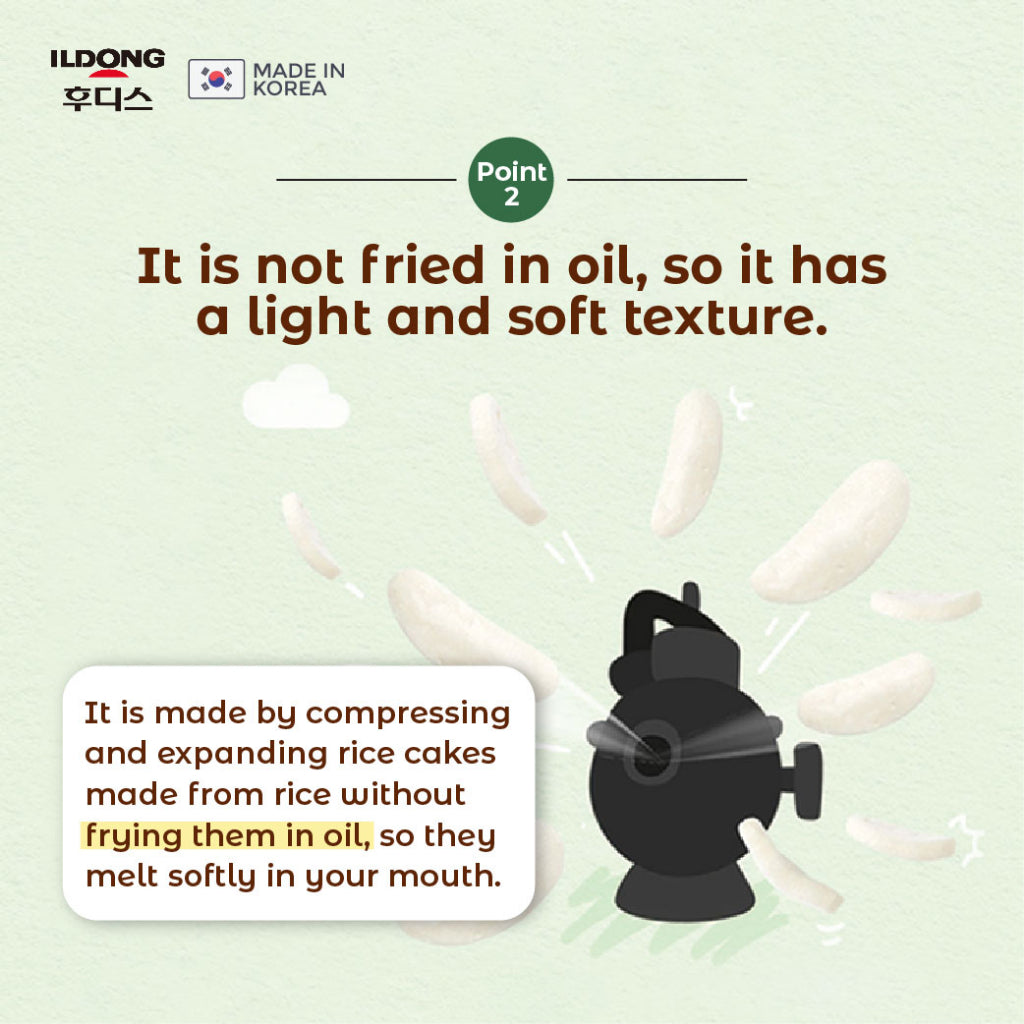 It is made by compressing and expanding rice cakes made from rice without frying in oil